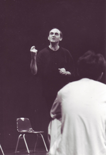 シアターΧは、民間経営であるが単なる貸ホールの形をとってはいない。前年10月末日までに提出された企画書を協議し、提携する公演を決定する。従って年間の公演はシアターXの自主企画および提携公演とである。管理会社からは「地域に密着した一般の人に受けるようなものの企画を」といわれているそうであるが、上田氏は「例えばミラノのスカラ座をミラノの人たちは誇りに思ってはいるけれども、スカラ座が地域の人に受けるのための特別な何かをするということはありません。今、なすべき芸術的課題を真摯に追求しているのみ」と言って切り抜けている。X(カイ)がめざしている作品も、今になすべき新しい思想、形式の懸命な模索である。先駆的な演劇が主軸であるが、近年はモダンダンスの上演も多く見られるようになった。大相撲発生の地、両国にあって、舞台の広さは12m×10m(最大時)、客席数は200席から400席、使用料は区営なみの低料金に抑えている。 |